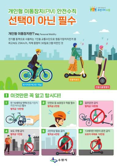 수원시 관계자는 "보행자와 PM 이용자 모두의 안전을 위해 인프라 구축 사업을 진행하게 됐다"며 "광교신도시를 중심으로 시범사업을 진행한 후 사업 구역을 확대하는 방안을 검토할 계획"이라고 말했다.