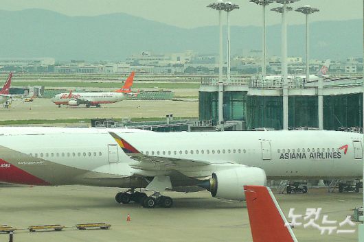 인천국제공항에 아시아나항공 여객기가 주기돼 있는 모습. 박종민 기자 |