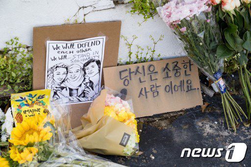애틀랜타 연쇄 총격 희생자들을 추모하기 위해 놓여진 꽃들. © AFP=뉴스1 |