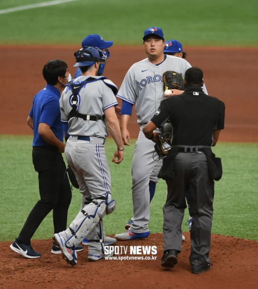 등판 도중 엉덩이 통증을 호소해 우려를 샀던 류현진(34·토론토 블루제이스)이 결국 부상자 명단으로 이동했다. 토론토 구단은 29일(한국시간) “류현진이 열흘짜리 부상자 명단으로 옮겨갔다. 직전 등판이었던 26일 탬파베이 레이스전에서 생긴 오른쪽 엉덩이 부상 여파 때문이다”고 밝혔다.