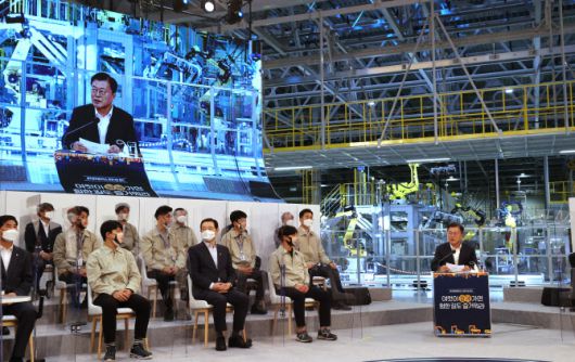 문 대통령은 이날 오후 GGM 공장에서 개최된 ‘대한민국 제1호 상생형 지역일자리 GGM 준공 기념행사’에 참석한 뒤 간담회를 진행하고 마무리발언을 통해 “지금까지는 좋은 일자리는 회사 임금 조건에 따라 결정된다고 인식해왔는데, 급여뿐 아니라 사회적으로 제공하는 주거, 교통, 복지, 문화 등을 높은 수준으로 제공해줄 수 있다면 좋은 일자리로 만들 수 있다”면서 이같이 말했다.