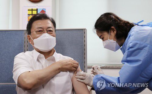 (서울=연합뉴스) 임형섭 기자 = 문재인 대통령은 30일 오전 9시 서울 종로구 보건소에서 신종 코로나바이러스 감염증(코로나19) 예방을 위한 아스트라제네카(AZ) 백신 2차 접종을 받았다.