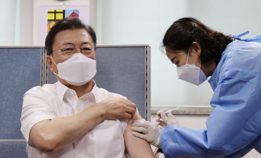 문 대통령은 오는 6월 영국에서 열리는 주요 7개국(G7) 정상회의 참석 일정을 고려해 지난달 ‘필수목적 출국을 위한 예방접종 절차’에 따라 1차 접종을 받았다. 아스트라제네카 백신의 1·2차 접종 간격(12주)을 고려해 5월 중순 2차 접종에 나설 예정이었다.
