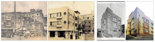 (왼쪽부터) 조선신문 1935년 6월1일자에 실린 내자동 미쿠니 아파트의 호화 낙성식 풍경. 시미즈건설주식회사가 보유중인 내자동 미쿠니 아파트 모습. ‘조선과 건축’(1930)에 소개된 남산동 미쿠니아파트 외관. 오늘날까지 공동주택으로 사용중인 남산동 미쿠니아파트. 사진·도서출판 집 제공 |