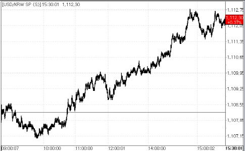 30일 서울외국환중개에 따르면 원·달러 환율은 전 거래일(1108.2원)보다 4.1원(0.37%) 오른 1112.3원에 거래를 마쳤다. 이날 환율은 전 거래일보다 0.2원 내린 1108원에 개장해 1107원까지 하락했지만 오전 11시께 상승 반전했고, 오후 들어 상승폭을 키웠다.