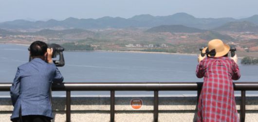 김여정 북한 노동당 부부장이 남한 탈북민 단체의 대북전단 살포에 대한 '상응 행동'을 검토하겠다고 밝힌 2일 오전 경기 파주 오두산통일전망대에서 시민들이 북한 개풍군 마을 일대를 망원경으로 바라보고 있다. 김 부부장은 앞서 지난해에도 탈북단체의 대북전단 살포를 맹비난하며 남북공동연락사무소 폭파를 지시한 바 있으며, 이번에도 강한 수위의 도발을 감행할 수 있을 것이라는 관측이 나온다. ● |