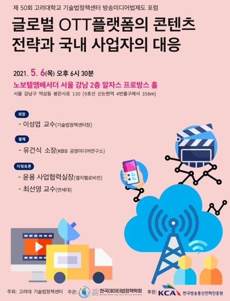 한국방송통신전파흥원(KCA)은 고려대 기술법정책센터와 오는 6일 '방송미디어 법제도 포럼'을 개최한다고 3일 밝혔다.