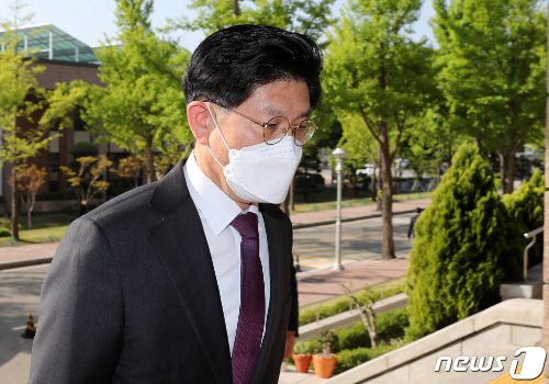 (과천=뉴스1) 박세연 기자 = 노형욱 국토교통부 장관 후보자가 3일 오전 경기도 과천정부청사 서울지방국토관리청에 마련된 청문회 사무실로 출근하고 있다. 2021.5.3/뉴스1 |