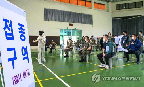 백신 접종 기다리는 군 장병과 군무원들 |