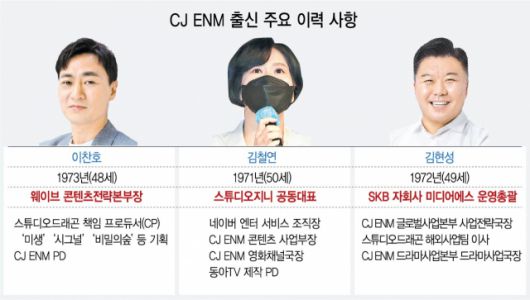 국내 온라인동영상서비스(OTT) 업계가 조 단위 투자 계획을 내놓은 가운데 새 판을 짤 콘텐츠 수장들의 윤곽도 드러나고 있다. 눈길을 끄는 새로운 수장들의 공통된 이력이 모두 비슷한 시기에 CJ ENM(035760)에서 한솥밥을 먹은 70년대생 콘텐츠 기획·제작자라는 점이다. 후발 주자로서 넷플릭스·디즈니플러스 등 글로벌 OTT에 맞서 차별화된 콘텐츠를 내놓아야 하는 과제를 CJ ENM 출신들이 어떻게 풀어갈 지 관심이 쏠린다.