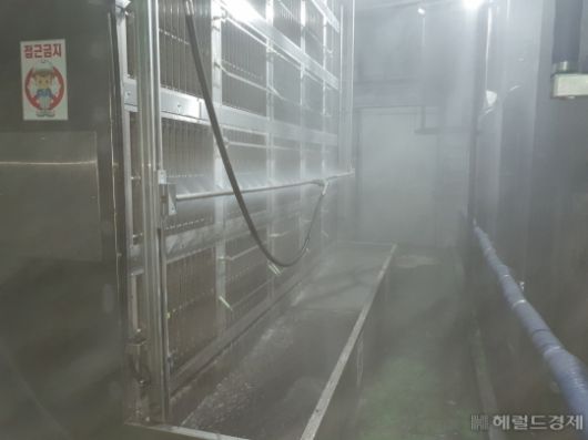 지하철 내 미세먼지 집진기에 모인 먼지를 고압의 물을 분사해 청소하고 있는 모습. [헤럴드DB] |