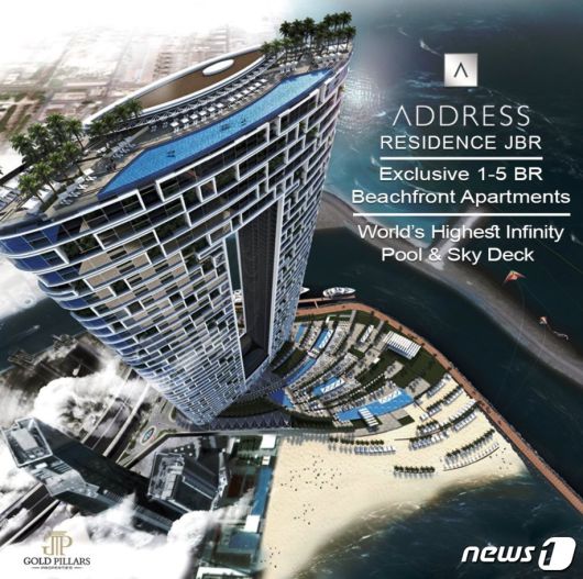 지난 3월 두바이 어드레스 비치 리조트 호텔에 개장한 세계 최고(高) 수영장.(트위터 갈무리)© 뉴스1 |