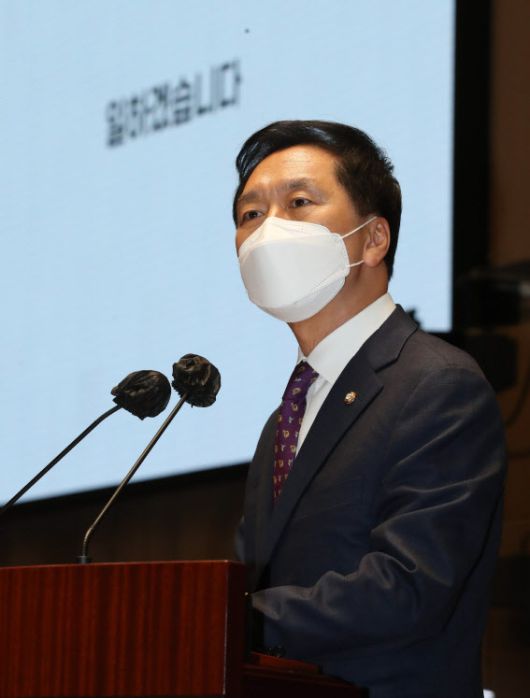 김기현 국민의힘 당 대표 권한대행 겸 원내대표가 6일 오전 서울 여의도 국회에서 열린 긴급의원총회에서 발언하고 있다.(사진=연합뉴스) |