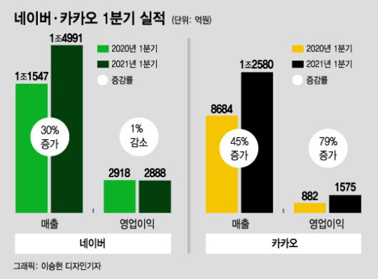 네이버 VS 카카오, 확연히 줄어든 매출·영업이익 격차