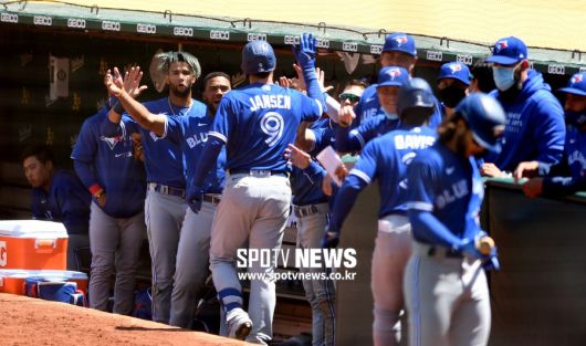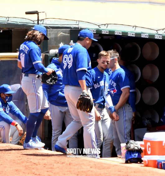 토론토 블루제이스는 7일(한국시간) 미국 캘리포니아주 오클랜드 오클랜드콜리세움에서 열린 '2021 메이저리그' 오클랜드 애슬레틱스와 경기에서 10-4 역전승을 거뒀다. 6일 9-4 승리에 이어 이틀 연속 완승. 부상자 명단에서 돌아온 류현진이 5이닝 6피안타(1홈런) 1볼넷 6탈삼진 4실점하고 시즌 2승(2패)을 챙겼다.