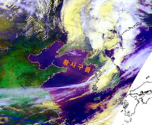 7일 오전 11시 40분 노아 위성으로 관측한 황사 구름 |