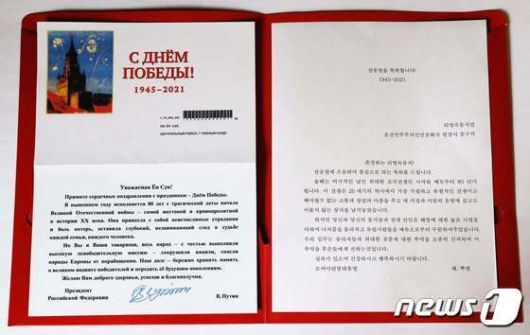 이어 "당신과 당신의 동지들과 전체 인민은 해방에 대한 높은 사명을 다해 나치즘을 물리치고 유럽 사람들을 예속으로부터 구원해줬다"며 "우리의 임무는 승리자들의 위대한 공훈에 대한 추억을 소중히 간직하고 이 추억울 후손에게 전하는 것"이라고 덧붙였다.