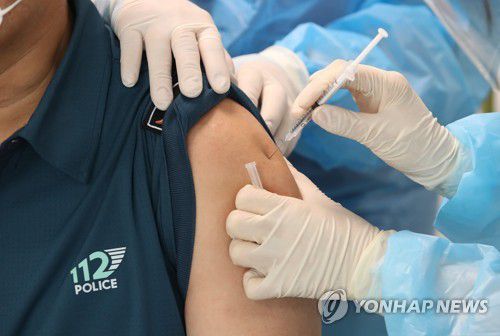 백신 접종받는 경찰관 |