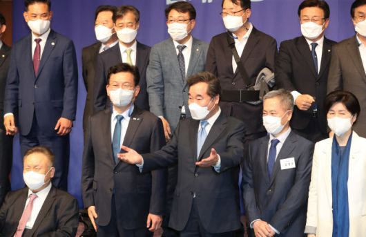 4·7재보궐선거 참패 후 잠행하던 이낙연 전 민주당 대표는 문재인 정부 출범 4년이 되는 이날 대선 싱크탱크인 ‘연대와 공생’을 출범시키며 본격적인 대선 행보에 돌입했다. 행사에 송영길 민주당 대표를 비롯해 전혜숙·강병원·백혜련 최고위원 등 당 지도부와 김진표·이상민·홍영표·박광온·박완주·양향자·윤영찬 의원 등 현역의원 40여 명이 참석했다.