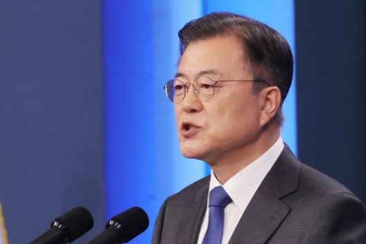 문재인 대통령이 10일 청와대 춘추관 대브리핑룸에서 취임 4주년 특별연설을 하고 있다. /사진제공=연합뉴스 |