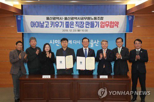 지난 2019년 12월 23일 울산시청 상황실에서 울산시와 울산시공무원노동조합이 '아이 낳고 키우기 좋은 직장 만들기 업무협약'을 체결했다. [울산시 제공. 재판매 및 DB 금지] |