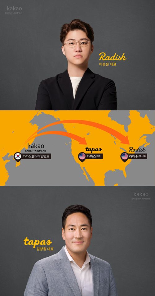 카카오엔터테인먼트(대표 이진수, 김성수)가 지난 7일 이사회를 열고 북미 웹툰 플랫폼 타파스 (Tapas Media Inc., 대표 김창원)와 웹소설 플랫폼인 래디쉬(Radish Media Inc., 대표 이승윤)를 인수하기로 결의했다고 밝혔다.
