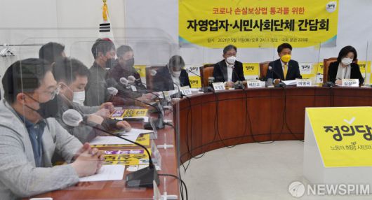 [서울=뉴스핌] 이형석 기자 = 여영국 정의당 대표와 자영업자 대표, 시민사회단체 관계자 등이 11일 서울 여의도 국회에서 코로나 손실보상법 통과를 위한 자영업자-시민사회단체 간담회를 갖고 있다. 2021.05.11 leehs@newspim.com 저작권자(c) 글로벌리더의 지름길 종합뉴스통신사 뉴스핌(Newspim), 무단 전재-재배포 금지