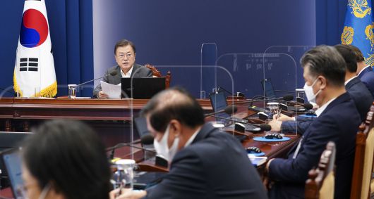 문재인 대통령이 26일 오후 청와대에서 열린 수석·보좌관회의에서 발언하고 있다./연합뉴스 |