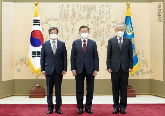 문 대통령은 임명장 수여 후 환담에서 "대법원 판결이 우리 사회와 미래 세대에까지 미치는 영향이 지대한 만큼 대법관으로 부담이 클 것"이라며 "사법부 독립, 기본권 보장, 사회적 약자 보호에 대한 확고한 신념을 가진 만큼 훌륭하게 대법관 역할을 수행할 것"이라고 격려했다.
