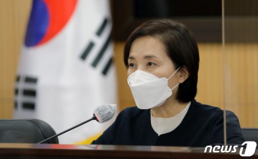 유은혜 사회부총리 겸 교육부 장관이 12일 정부세종청사에서 열린 서울-세종 영상 사회관계장관회의에서 모두발언을 하고 있다. /사진=뉴스1 |