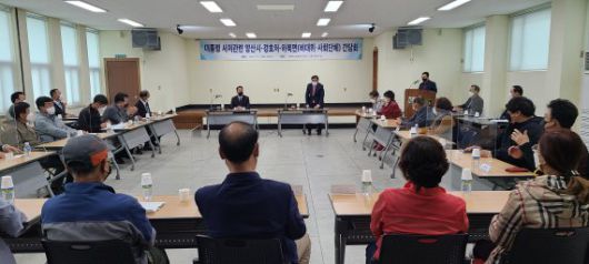 ▲ 지난 11일 오후 4시 하북면 행정복지센터에서 '대통령 사저 관련 간담회'가 진행되고 있다. /사진=뉴스1 |