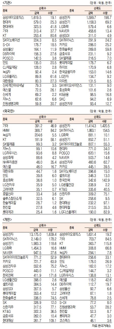 [표]유가증권 코스닥 투자주체별 매매동향(5월 12일-최종치)