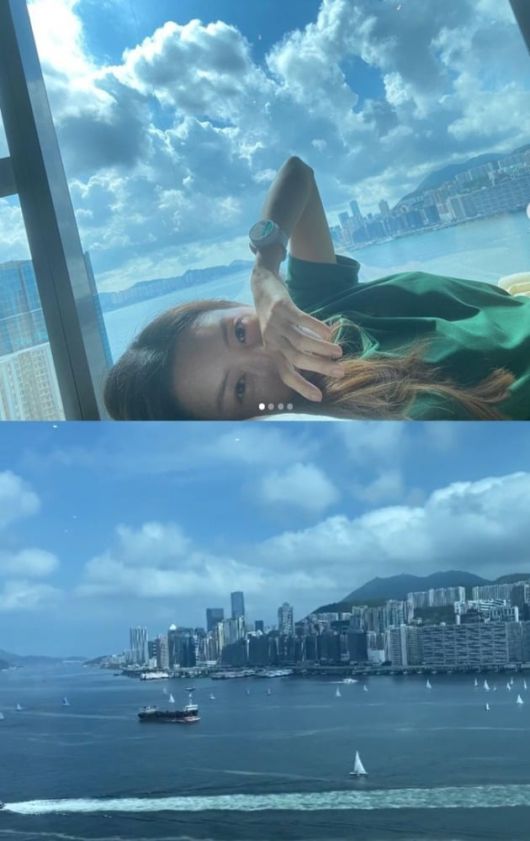배우 김정은이 홍콩 호텔에서 자가 격리 중인 근황을 공개했다.
