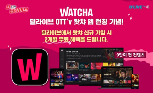 딜라이브는 왓챠 출시 기념 신규가입 2개월 무료 이벤트도 진행한다.