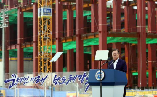 문 대통령은 이날 오후 경기도 평택시 삼성전자 평택단지 3라인 건설현장에서 열린 'K-반도체 전략 보고- 준비된 미래, 반도체 강국' 행사에서 "기업의 노력을 확실하게 뒷받침하겠다"며 이같이 말했다.