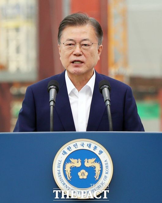 문재인 대통령이 13일 오후 경기 평택시 삼성전자 평택단지 3라인 건설 현장에 마련된 야외무대에서 열린 'K-반도체 전략 보고'에 참석해 발언하고 있다. /뉴시스 |