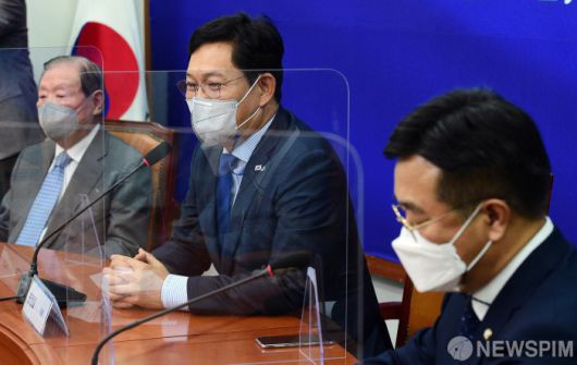 [서울=뉴스핌] 김지현 기자 = 송영길 더불어민주당 대표가 13일 박준영 해양수산부 장관 후보자의 사의 표명에 대해 "안타까운 일이지만 공직 수행 중 도자기 그릇과 관련한 판매 행위는 국민 눈높이에 맞지 않았다"며 "불가피하게 물러날 수 밖에 없는 사안"이라고 말했다.