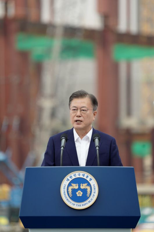 문재인 대통령이 13일 오후 경기도 평택시 삼성전자 평택단지 3라인 건설현장에 마련된 야외무대에서 열린 ‘K-반도체 전략 보고’에서 발언하고 있다.(사진=연합뉴스) |