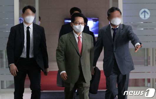 (서울=뉴스1) 이승배 기자 = 박지원 국가정보원장이 일본 도쿄에서 열린 한·미·일 3국 정보기관장 회의를 마치고 13일 오후 인천국제공항을 통해 귀국하고 있다.
