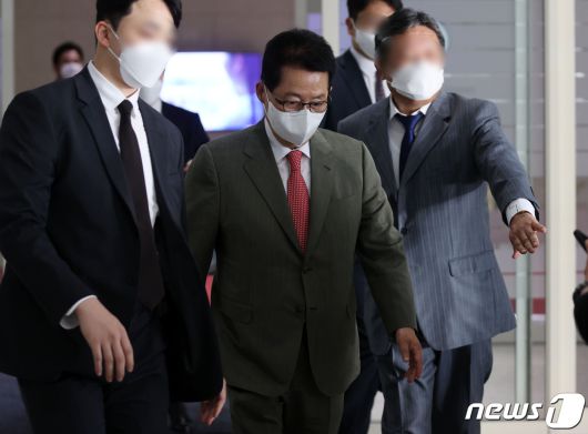(서울=뉴스1) 이승배 기자 = 박지원 국가정보원장이 일본 도쿄에서 열린 한·미·일 3국 정보기관장 회의를 마치고 13일 오후 인천국제공항을 통해 귀국하고 있다.