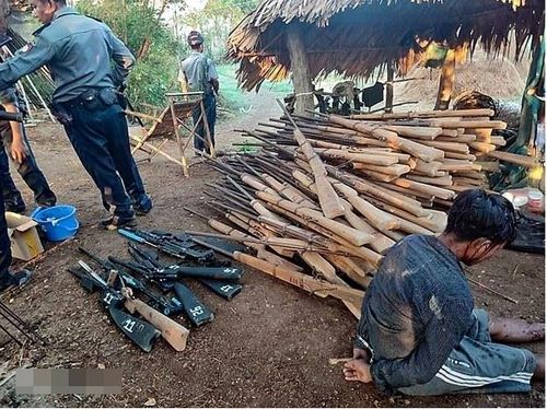 미얀마 군경이 시민방위군 은신처를 급습해 사제 총기 등을 노획한 모습 |