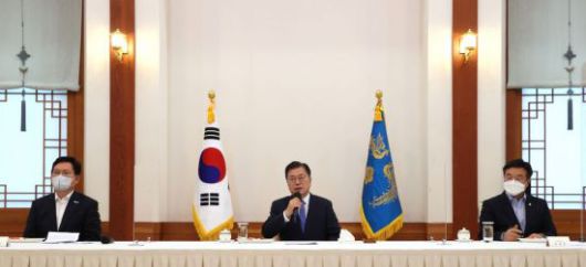이어 문 대통령은 "소재·부품 장비 기업이 기술자립을 위해 민·관·대기업과 중소기업간의 협업으로 위기를 극복한 것처럼 현재 반도체 패권경쟁 속에서 선도국가로 도약할 수 있도록 함께 힘을 모으자"며 "이제 김부겸 국무총리를 중심으로 국무위원들이 새 진용을 갖추고 여당 지도부도 새로 출범한 만큼, 남은 1년을 성공적으로 마무리하기 위해 당청간에 긴밀한 공조하에 원팀으로 노력하자"고 강조했다.