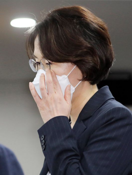 임혜숙 신임 과학기술정보통신부 장관이 14일 오후 세종시 정부세종청사에서 열린 취임식에서 안경을 올리고 있다.(사진=연합뉴스) |