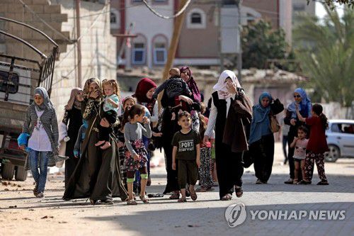공습 피해 피난길 나서는 팔레스타인 어린이와 여성들 |