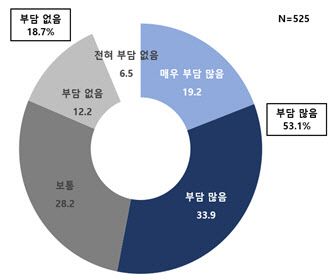 최저임금이 자영업자 경영에 미치는 부담 정도 (%) (자료=한경연) |