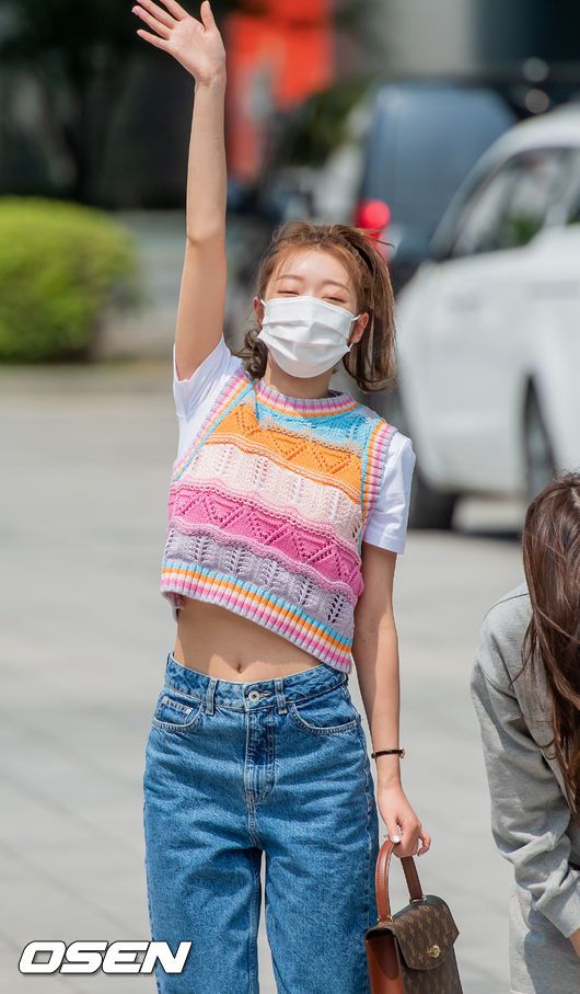 [OSEN=민경훈 기자] 오마이걸 유아가 출근길 중 포토타임을 갖고 있다. (코로나 사태 이전) /rumi@osen.co.kr