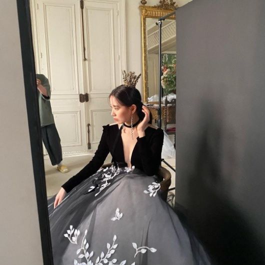 공개된 사진 속에는 최연수가 가슴골이 훤하게 드러나있는 벨벳 드레스를 입은 채 촬영을 준비 중이다. 머리에 쓴 왕관까지 최연수의 압도적인 포스가 감탄을 자아낸다.