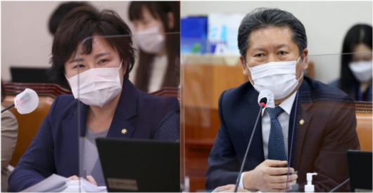 조수진 국민의힘 의원(왼쪽)과 정청래 더불어민주당 의원(오른쪽)./사진=뉴스1 |