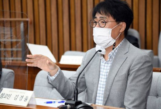 김경율 경제민주주의21 공동대표가 지난 7일 오후 서울 여의도 국회에서 열린 김부겸 국무총리 후보자 인사청문회에 참고인으로 출석해 답변하고 있다. 뉴스1 제공 |
