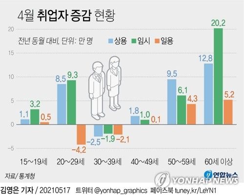 ◇ 4월 연령 및 종사상지위 별 취업자 증감(단위:천명, 전년 동월 대비)